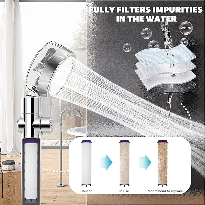 Filtro de agua de 3 capas – Elimina impurezas y protege tu piel y cabello.